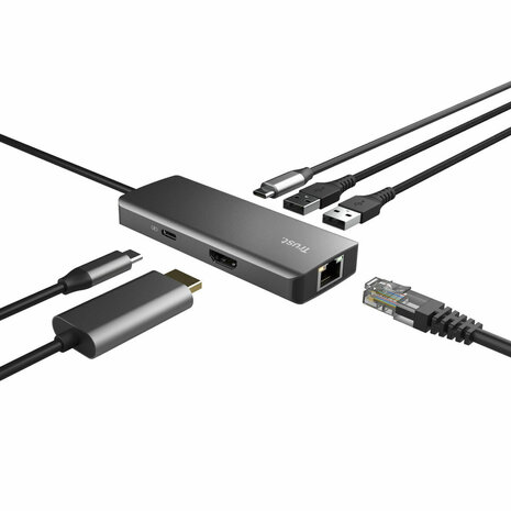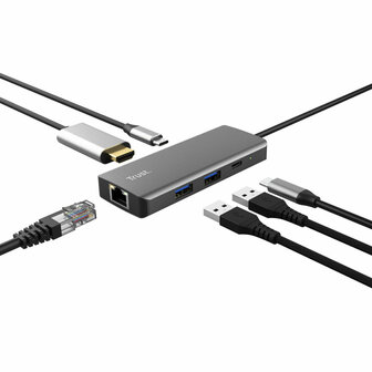 USB-HUB Trust 24968 Zilverkleurig (1 Stuks) tegen de beste prijs. | Eigenschappen: Ethernet-poort | USB-C | Ja | Ledlamp in operatie-indicator | | Kleur: Zilverkleurig | Verbindingen: USB-C | USB...